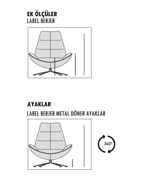 Ayak: 360 derece dönebilen ,taşıyıcılığı arttırılmış ve kolay çizilmeyen yüksek kalite statik boya ile kaplı metalden oluşmaktadır.