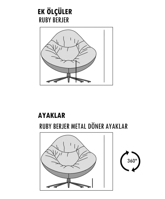 Ayak: 360 derece dönebilen ,taşıyıcılığı arttırılmış ve kolay çizilmeyen yüksek kalite statik boya ile kaplı metalden oluşmaktadır.