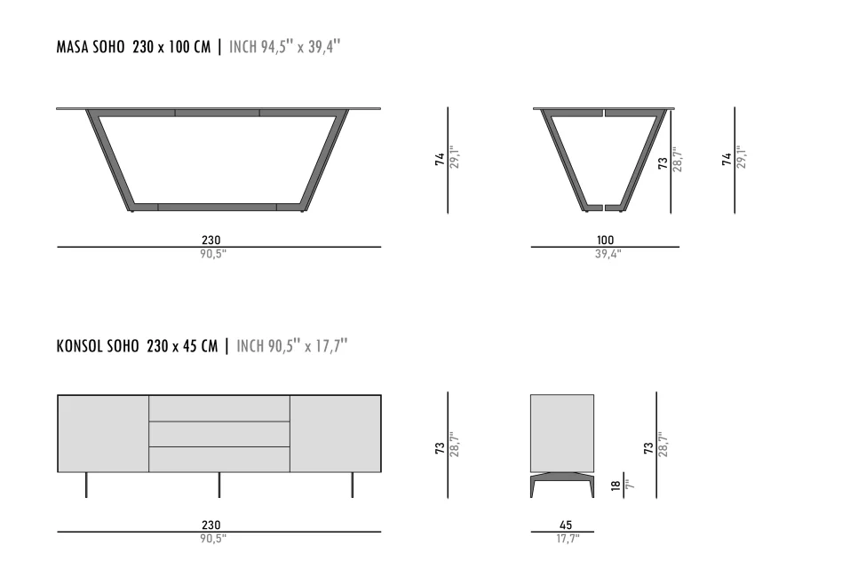 Konsol, Masa ve Sehpa: Taşıyıcılığı arttırılmış ve kolay çizilmeyen yüksek kalite statik boya ile kaplı metalden oluşmaktadır.